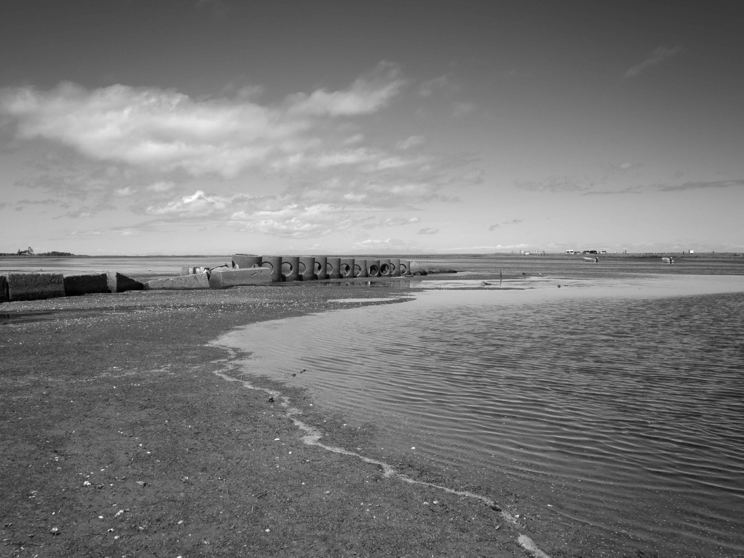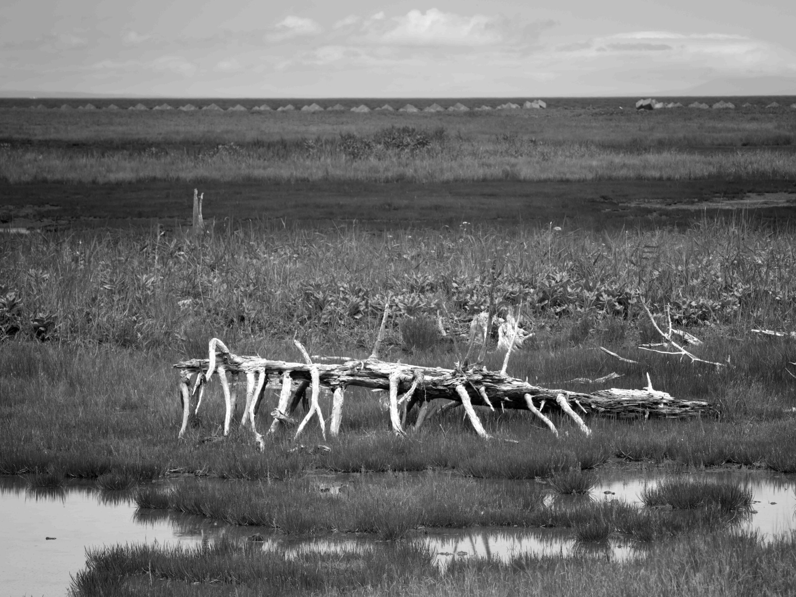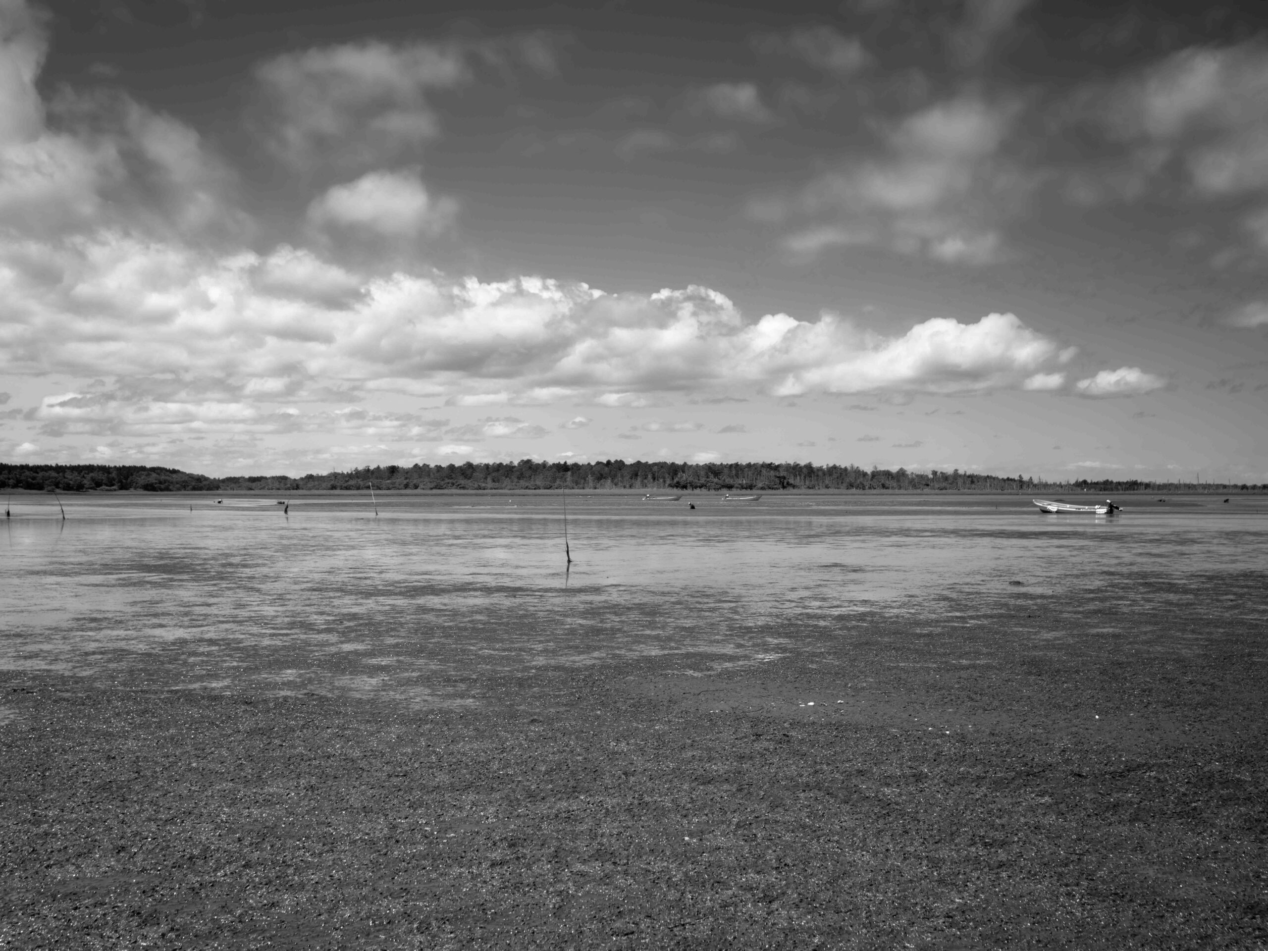 風蓮湖は根室半島のつけ根に位置し、周囲約96kmの海水の混ざる汽水湖です。 野付風蓮道立自然公園の中にあり、広大な湿原や森林、砂丘など変化に富んだ自然環境が広がっています。 風蓮湖と根室湾を区切るように、長さ8km、幅1.3kmの長大な砂州が春国岱です(根室市観光協会のHPより)20年以上前より仕事の関係もあり、道東地区を毎年訪れていましたが、この風蓮湖は「季節により」「天候により」「潮の満ち引き」によりその表情を大きく変えることに気づき、それ以降機会があるごとに訪れています。今回はそれらを伝えたく、カメラを持ってきました。季節は夏、天候は晴れで引き潮です。